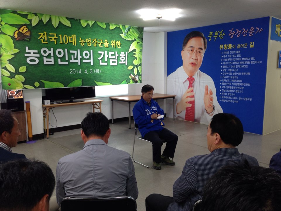 유창종 예비후보는 “농업분야 예산규모는 현재 20% 정도이나 농업비중은 60%로 그 중요성에 따라 적어도 25%까지 올라야 한다”며 “농업경쟁력 확보를 위해 현실성 있는 정책 수립과 농업인이 땀 흘리는 현장의 목소리를 귀담아 제대로 된 농정을 구현해야한다”고 의지를 밝혔다.