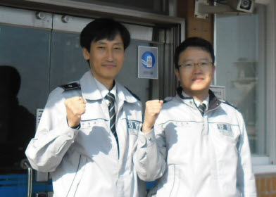 이경태 경위와 오승용 경사는 “어떠한 경우라도 생명을 잃게 해선 안 되는 것 아니냐”며 “귀중한 한 생명을 구할 수 있어서 다행이다”고 말했다. /장명국 記者
