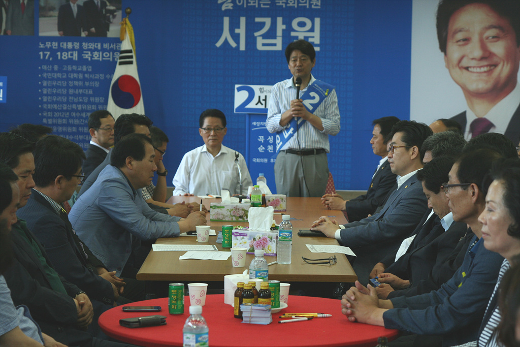 박지원 전 원내대표는 유성엽 국회의원과 함께 지난 개소식에 이어 곡성, 순천을 두 번째 방문해 지방의원들과 간담회를 가지며 서갑원 후보 선거지원을 독려했다.