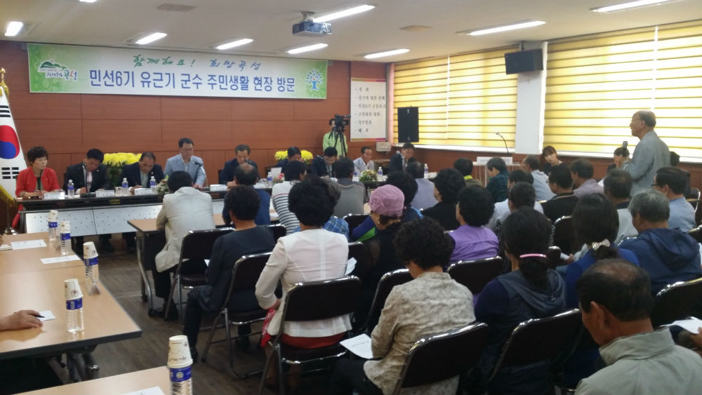 유근기 군수가 민선 6기 군정 운영방향을 설명하고 주민들의 군정 참여 분위기를 조성하기 위해 취임 후 첫 읍·면 순방에 나섰다.
