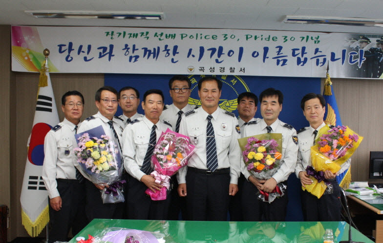 곡성경찰서(서장 서병률)는?지난 20일 2층 심청마루에서 만 30년 이상 장기재직자 선배 경찰관 8명을 격려하는 시간을 가졌다.