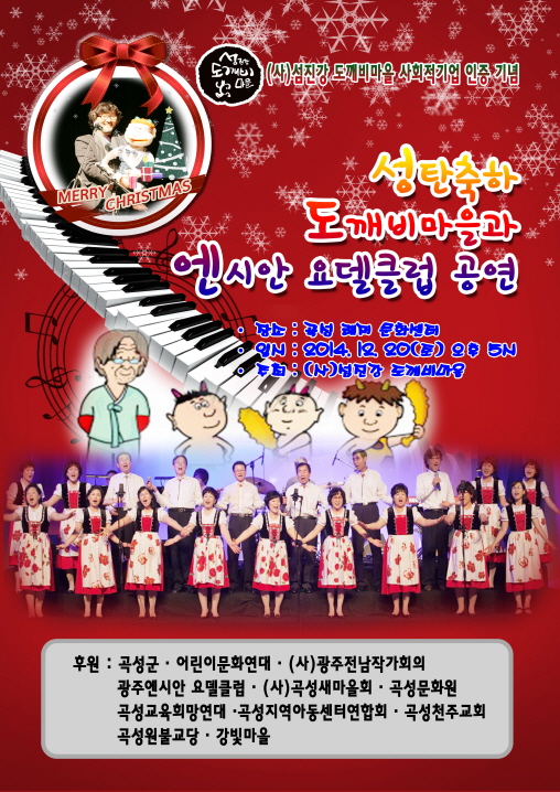 올해 본 사회적 기업으로 첫발을 내디딘 (사)섬진강 도깨비마을이 착한 기업의 본보기가 되기 위한 노력의 일환으로 오는 20일 오후 5시 곡성문화센터에서 성탄 축하 공연을 연다.