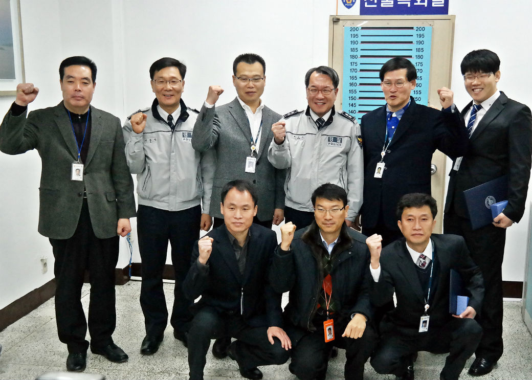 이날 표창 수여식에는 지방청장(치안감 백승호)이 직접 방문해 검거 유공자인 강력팀 경사 김승학, 경사 정건성에 대해 상을 수여하고 격려금도 전달했다.