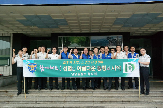 담양경찰서 청렴동아리 청죽회는 26일 아침 경찰서 정문 등에서 직원 20여명이 참석한 가운데 무사고 달성 2주년을 맞아 “함께 해요, 청렴은 아름다운 동행의 시작”이란 캐치플레이로 청렴캠페인을 실시했다.