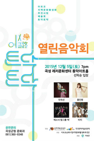 이번 공연은 당일 선착순 무료 입장으로 진행되며, 공연에 관한 문의는 곡성군청 문화과(☎061-360-8348)로 하면 안내받을 수 있다.