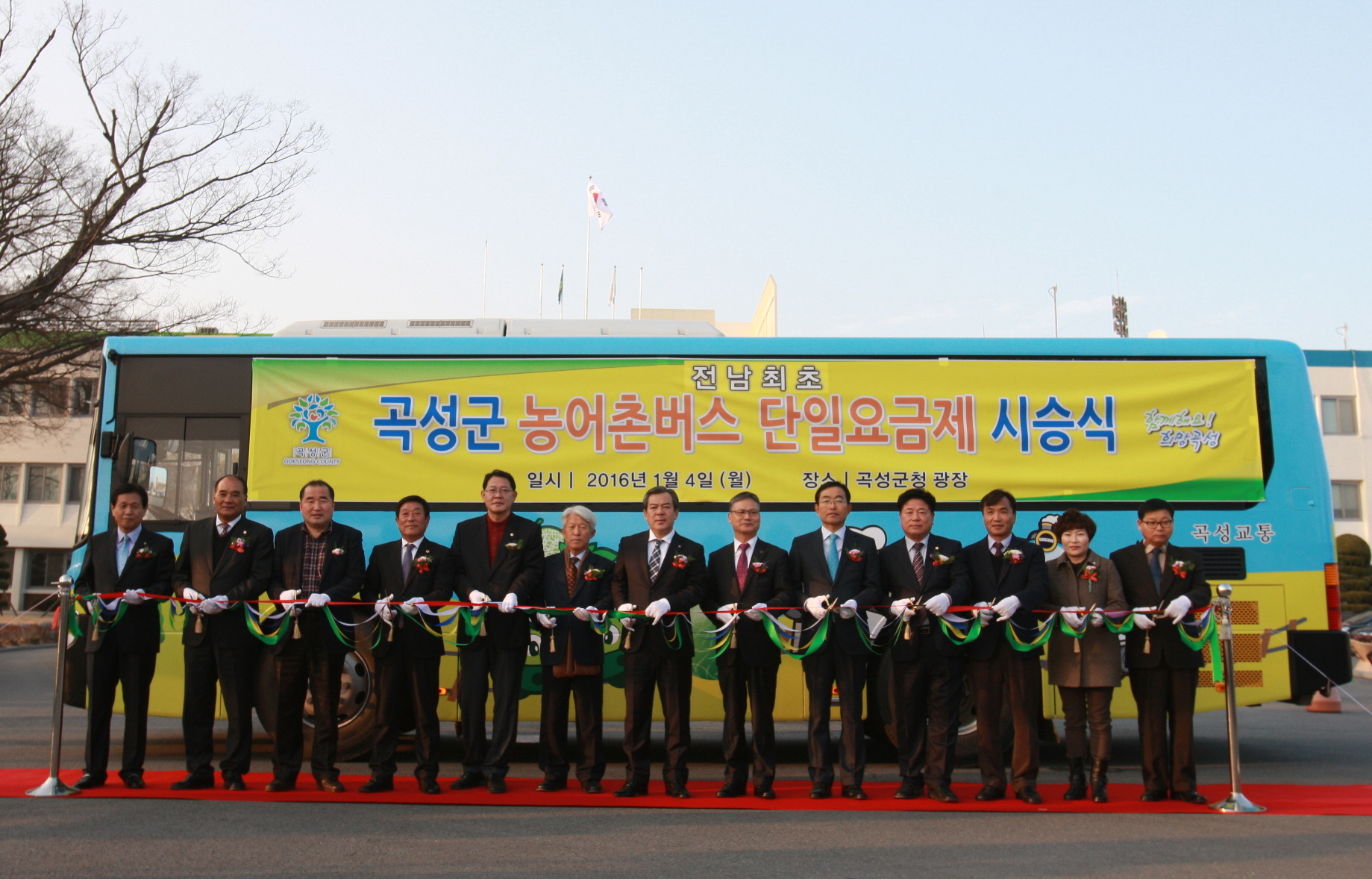 올해 1월 1일부터 시행하고 있는 곡성군 농어촌버스 단일요금제는 민선 6기 유근기 군수의 공약사항으로 교통 오지마을 주민과 노인, 학생 등 교통약자의 대중교통 이용부담 완화를 위해 전남도에서는 최초로 시행하는 교통복지 정책이다.