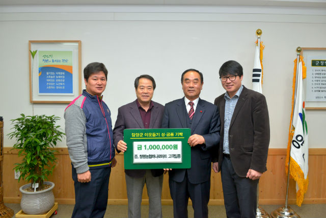 창평농협 하나로마트 고객일동은 “우리 사회의 소외된 이웃에게 조금이나마 도움이 되고자 성금을 마련에 참여하게 되었다”며 “향후 여러 방법을 통해 지속적인 나눔과 봉사를 실천하겠다”고 밝혔다.