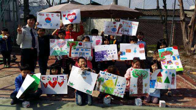 경찰청 주관으로 진행하는 ‘안보사랑 콘테스트’에 맞춰, 안보와 나라사랑에 대한 이야기를 나누며 야외에서 포스터그리기와 놀이활동 등을 진행했다.
