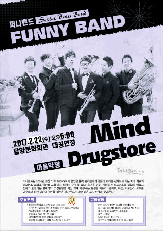 담양군에 따르면, 2017년 ‘문화가 있는 날’을 장식할 첫 번째 공연으로 늘 반복되는 일상 속에서 지쳐있는 몸과 마음에 잔잔한 위로를 전하는 퍼니밴드의 ‘마음약방’ 공연이 오는 22일 오후 6시 담양문화회관 대공연장에서 열린다.
