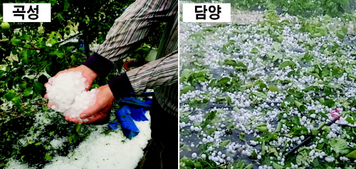 곡성·담양지역에는 지난달 31일 오후 6시부터 소나기를 동반한 우박이 떨어졌다.