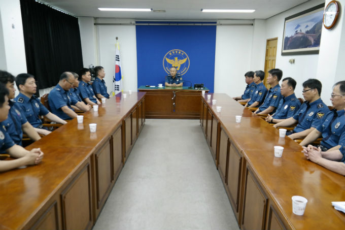 담양경찰서(서장 황석헌) 는 지난 13일 경찰서 소회의실에서 하반기 인사발령자에 대한 신고식을 기존의 형식을 탈피, 티타임으로 대신했다.