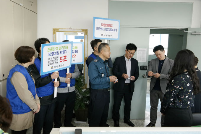 담양경찰서(서장 황석헌)는 지난 11일 경찰서장, 청렴동아리 회원 등 10여명이 참여한 가운데 경찰서 각 사무실을 순회하며 조직 내 양성간 존중 배려 ‘붐’ 조성 및 피해자보호를 위한 캠페인을 실시했다.
