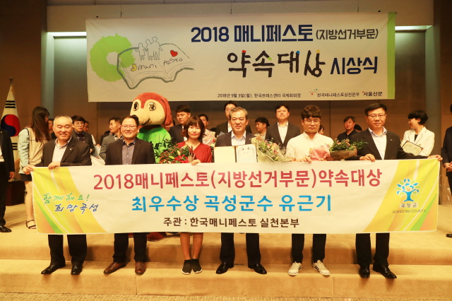 매니페스토본부는 "유근기 군수가 지역현안에 대한 이해도가 높고 그에 대한 정책 대안을 충분히 제시하고 있다"며 "군민의 행복을 최우선하는 사람 중심의 군정 철학을 바탕으로 모든 공약들이 체계적으로 정리돼 있다"며 수상 이유를 밝혔다.