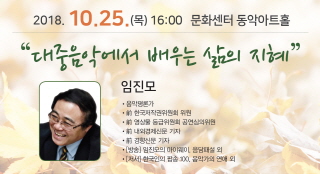 곡성군이 10월 25일 목요일 오후 4시 곡성문화센터 동악아트홀에서 대중음악평론가이자 방송인인 임진모 씨를 초청하여‘대중음악에서 배우는 삶의 지혜’라는 주제로 강연을 진행한다.