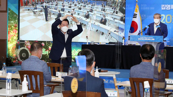 이날 도민과의 대화에는 김영록 도지사와 유근기 곡성군수, 정인균 군의회 의장, 이상철·정옥님 도의원 등 200여 명이 참여했다. /장명국 記者
