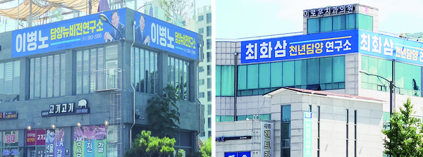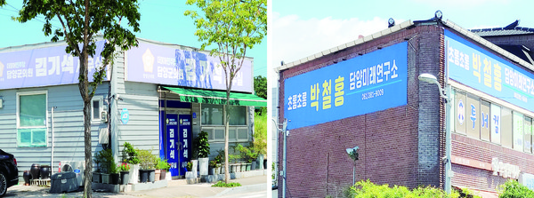 권리당원 확보와 주민 인사, 밴드(BAND) 회원 확장과 SNS 소통 등 이미 온·오프라인을 통해 인지도를 올리고 있는 이들은 최근 유동인구가 많은 백동사거리와 공용정류장 주변에 잇따라 개인사무소를 열고 큰 간판을 내걸었다.