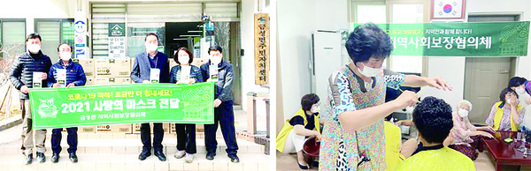 금성면지역사회보장협의체(위원장 최종덕) 역시 코로나19로부터 안전한 지역을 만들기 위해 1500세대에 각각 5매의 마스크를 전달해 지역사회 감염 확산의 기초를 탄탄하게 다졌으며 용면지역사회보장협의체(위원장 나정대)도 거동이 불편해 이미용 업소 이용이 어려운 어르신과 주민을 대상으로 미용실을 운영했던 이순영 위원의 재능기부로 찾아가는 사랑의 이미용 봉사를 진행했다.