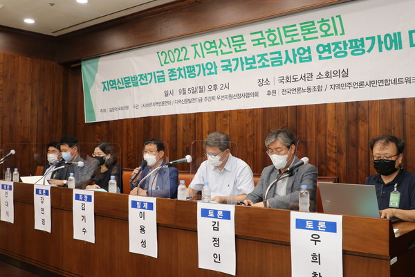 이같은 상황 속에서 전국의 풀뿌리 지역언론인이 참석한 가운데 ‘지역신문발전기금 존치평가와 국가보조금사업 연장평가에 따른 분석’을 주제로 한 국회 토론회가 지난 5일 국회 도서관 소회의실에서 열려 눈길을 끌었다. 이날 토론회에는 역대급 태풍에도 불구하고 전국에서 100여 명의 지역신문 종사자가 참석해 기금존치평가와 국고보조사업 연장평가에 대한 분석에 이어 대안을 모색했다.