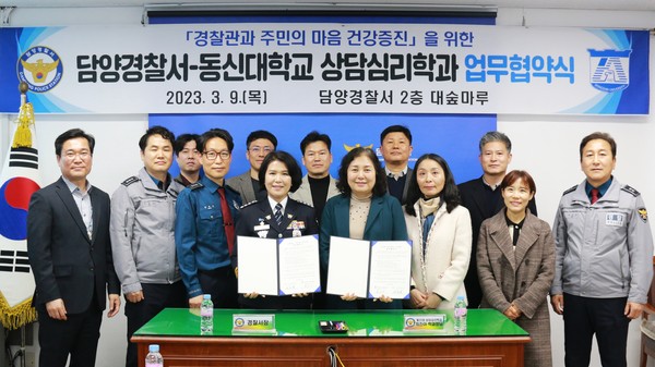 담양경찰서(서장 박송희)는 최근 경찰관의 마음 건강증진과 중요범죄 가·피해자의 심리 회복 지원 자문을 위해 동신대학교 상담심리학과와 업무협약을 체결했다.