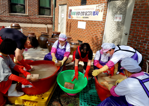 이번 행사는 메주 씻기, 염도 맞추기, 숯을 이용한 잡냄새 제거 등 체험으로 진행됐다. 오랜 숙성을 통해 만들어지는 장을 담그는 과정을 통해 스며있는 조상의 지혜를 배우고 음식문화에 대해 생각해보는 의미 있는 시간이 됐다. 직접 담근 된장과 간장은 학생들의 급식재료로 쓰일 예정이다.