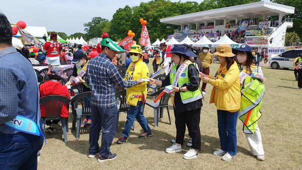 담양경찰서(서장 박송희)는 지난 2일, 담양추성경기장에서 열린 KBS 전국노래장을 찾아 여성자율방범대 50명과 합동으로 마약류 이용 성범죄 예방에 대한 캠페인 활동을 펼쳤다.
