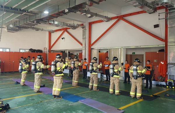 평가는 화재·구조 분야 △공기호흡기장착 및 비상호흡법 △로프매듭법 및 각종 기구 묶기 △사다리 설치 및 등반 △화재진압 4인 조법 △요구조자 운반법, 구급분야 △응급처치 팀 전술 등으로 나눠 개인 및 팀별 기본전술능력을 점검한다.