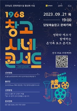 (재)담양군문화재단은 오는 21일 오후 7시 담빛예술창고 문예카페에서 야간영화제 ‘1968 창고 시네(Cine)-콘서트’를 개최한다고 전했다.