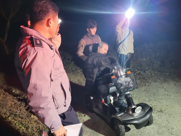 곡성경찰은 ‘전신마비환자인데 15시경 전동휠체어를 타고 나갔다’는 112 신고를 받고 현장에 출동해 경찰 25명, 소방 9명, 자율방범대원 10명, 마을주민 등 60여명으로 구성된 수색팀을 8개 조로 나누어 수색하던 중 마을에서 약 2.5km 떨어진 야산 깊은 막다른 산속 길에서 의식을 잃고 혼자 고립되어 있던 요구조자를 형사팀이 발견, 병원으로 후송했다.