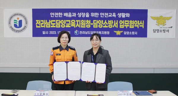 담양소방서(서장 윤예심)는 지난 22일 담양교육지원청(교육장 이경애)과 재난으로부터 안전문화 정착 및 안전보호를 위한 업무협약을 체결했다.