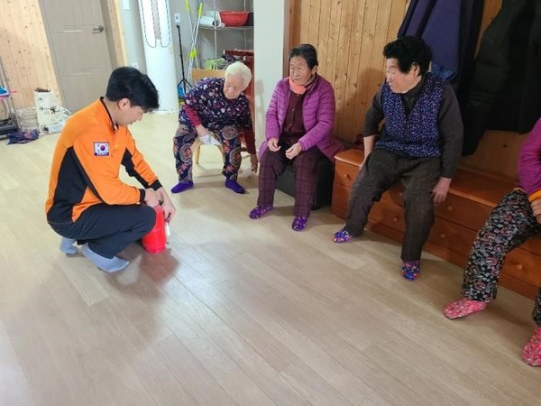 곡성소방서(서장 이중희)는“청춘119노인단원들에게 꾸준한 소방안전교육을 실시해 화재 등 위급상황 발생 시에 마을주민들의 효과적인 선제 대응이 이루어져 화재 시 주변의 소화기를 활용해 초기진화를 할 수 있도록 최선을 다하겠다”고 전했다. /장명국 記者