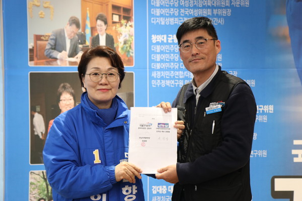 권향엽 국회의원 후보가 지난 22일 선거사무소에서 민주노총 공공운수노조 화물연대본부와 정책 협약식을 가졌다.