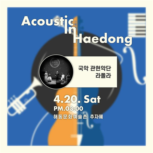 (재)담양군문화재단은 지난 3월 공연에 이어 ‘어쿠스틱 인 해동’ 4월 공연을 진행한다.