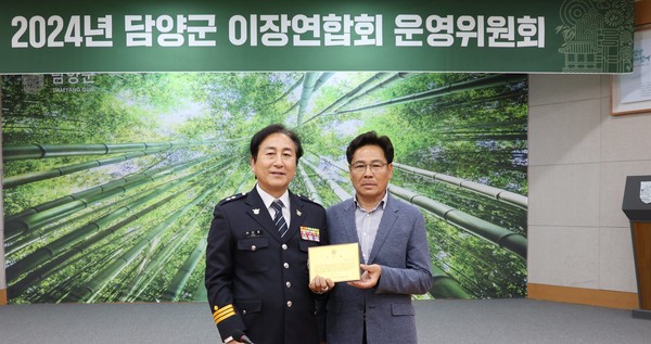 담양군 이장단은 지난 2년간 생활안전교통과장으로 재직하면서 안전한 담양 만들기의 일환으로 군민이 안심하고 생활할 수 있는 범죄예방 환경 조성을 위해 CCTV 확충과 정성치안, 참여치안에 앞장선 허진호 생활안전교통과장에게 담양군 이장단 명의의 감사패를 수여했다.