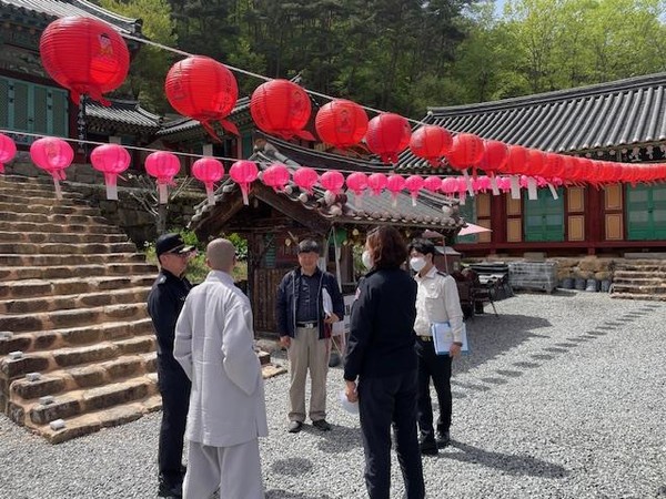 주요 내용은 ▲ 화재취약요인 사전제거 및 안전관리 지도▲ 사찰 주변 금연 표지판, 소화기 설치 및 화재안전교육▲ 대규모 이용객 입장 대비 인파사고를 대비 안전요원 비치 지시 등이다.