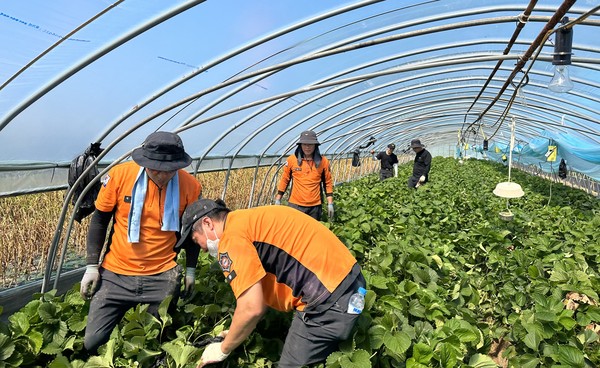 이에 담양소방서 직원들은 관내 봉산면 소재 딸기재배농가 4곳을 찾아 비닐하우스 보강, 상토 걷기 등 딸기 재배 과정을 돕고 농가 주변 환경정화작업에도 일손을 보태며 구슬땀을 흘렸다.