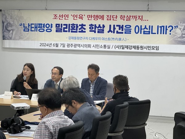 (사)일제강제동원시민모임(이사장 이국언) 주관으로 지난 7일 광주광역시의회 브리핑룸에서 일본에서 활동 중인 강제동원 연구자 다케우치 야스토 씨가 ‘밀리환초 조선인 학살’ 사건을 고발한 기자간담회에서 던져진 화두.