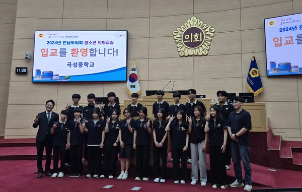 진호건 의원은 곡성중학교 학생들을 맞이하며 “교과서에서만 배운 민주주의의 절차와 과정을 직접 현장에서 체험함으로써 민주 시민 역량을 함양하는 좋은 경험이 되길 바란다”고 말하고 “오늘 청소년 의회교실을 바탕으로 곡성군과 전라남도, 나아가서 대한민국의 발전에 기여하는 훌륭한 민주시민으로 성장해 주기를 바란다”고 당부했다. /장명국 記者