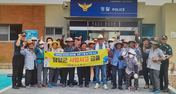 담양경찰서 수북파출소는 최근 보행자 사고와 자전거 사고 등 노인 교통사고가 증가함에 따라 월산치안센터 앞에서 교통사고 예방을 위한 캠페인을 실시했다.