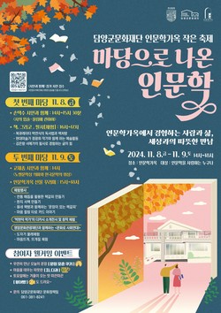 (재)담양군문화재단(이사장 이병노, 이하 재단)은 오는 8일과 9일 이틀동안 인문학가옥 내에서 인문학가옥 작은 축제 ‘마당으로 나온 인문학’을 개최한다고 밝혔다.