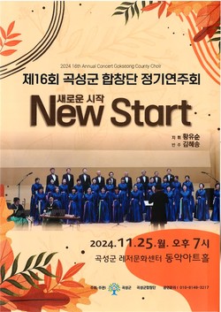 곡성군은 오는 25일 곡성읍 레저문화센터 동악아트홀에서 제16회 곡성군합창단 정기연주회‘New Start(새로운 시작)’을 개최한다고 전했다.