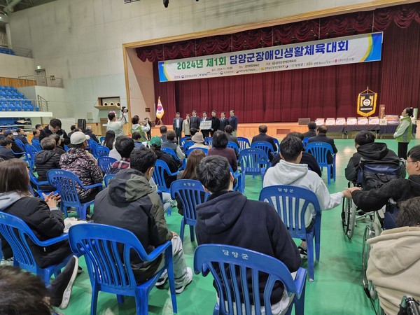 제1회 담양군장애인생활체육대회가 관내 장애인 종목 선수와 관계자 등 200여 명이 참가한 가운데 지난 19일 담양군종합체육관에서 개최됐다.