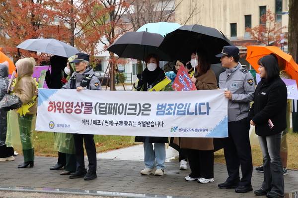 담양경찰서(서장 권현오)는 27일 ‘여성폭력추방주간’을 맞아 주민들을 대상으로 가정폭력, 마약류 이용 성범죄, 딥페이크 성범죄 근절을 위한 예방 홍보 캠페인을 지역 관계기관 30여 명과 함께 실시했다.