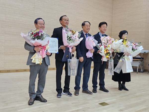 강성남 담양문화원장(사진 왼쪽에서 첫 번째)이 담양문화원 인문학관에서 열린 제47회 전남문학상 및 제37회 전남백일장 시상식에서 아동분야 전남 문학상을 수상했다.