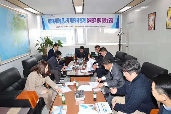 전남도의회 의원 연구단체인 ‘사회복지시설 종사자 지원정책 연구회(대표의원 박종원)’는 지난 12일 정책연구용역 최종보고회를 개최했다.