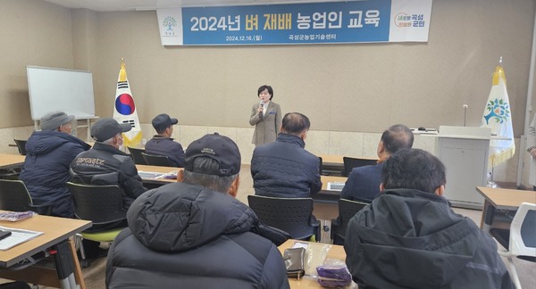 곡성군은 지난 16일 내년도 벼 다수확 재배를 위한 농업인 교육을 11개 읍·면 농업인을 대상으로 추진했다.