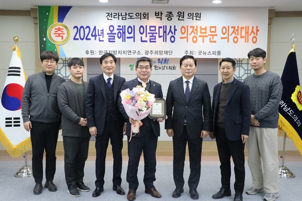 전라남도의회 박종원 의원(사진 가운데)이 ‘2024 올해의 인물 대상’ 시상식에서 ‘광역의회부문 의정대상’을 수상했다.