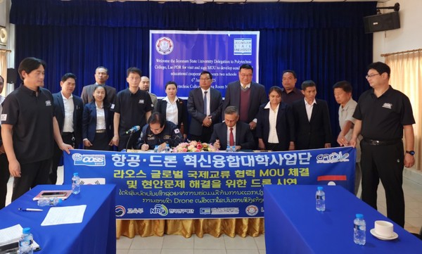 전남도립대학교 항공·드론 혁신융합대학사업단(단장 천종훈)은 라오스 폴리텍대학(Poly Technic College)과 드론 기술, 교육 협력을 위한 양해각서를 체결했다고 밝혔다. 협약은 양국의 드론 산업 발전과 교육 혁신을 위한 지속 가능한 협력체계를 마련하는 데 중점을 뒀다.