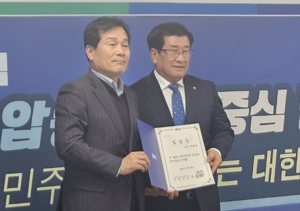 최화삼 담양새마을금고 이사장이 더불어민주당 전남도당(위원장 주철현 국회의원) 부위원장에 임명됐다.(사진)