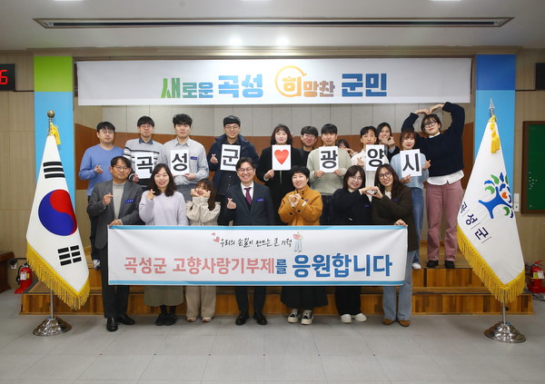 곡성군과 광양시가 고향사랑 기부를 통해 지역 간 상호 우애와 발전을 다지고자 상호 기부를 통해 양 기관은 서로의 지역에 고향사랑 기부의 확산을 기원하는 바람을 반영해 정창모 곡성부군수를 비롯해 곡성군청 행정과 직원들이 모두 참여했다.