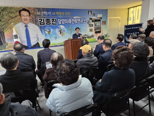 담양군수 재선거에 출마를 준비 중인 김종진 담양미래전략연구소 상임위원장이 담양문화회관 건너편에 사무실을 마련하고 개소식을 가졌다.(사진)